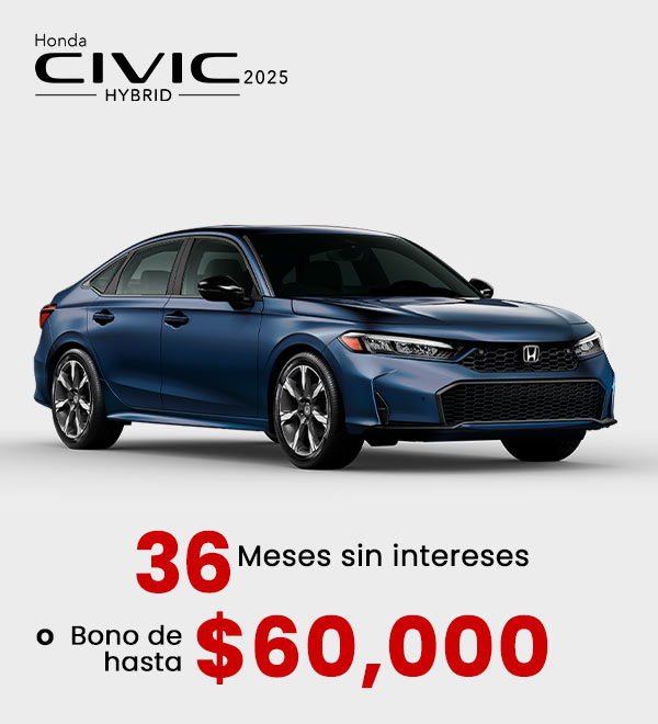 CIVIC® FINANCE 36 MESES SIN INTERESES O BONO DE HASTA $60,000 - Honda® Civic® HEV 2025