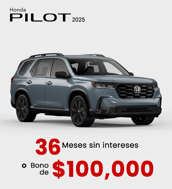 Vigencia del 01 al 31 de octubre de 2025 o hasta agotar existencias lo que suceda primero. Bono flexible de $100,000 aplica en la compra de un Honda Pilot® en versión TOURING y BLACK EDITION modelo 2025. El bono no aplica con otras promociones.
