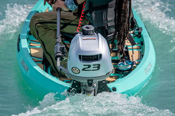 Y justo eso pasa con el BF2.3 de Honda, uno de los motores fuera de borda de cuatro tiempos más ligeros del mundo. El BF2.3 es tan ligero que rivaliza con muchos motores eléctricos (sin batería) y de dos tiempos de 2HP.
