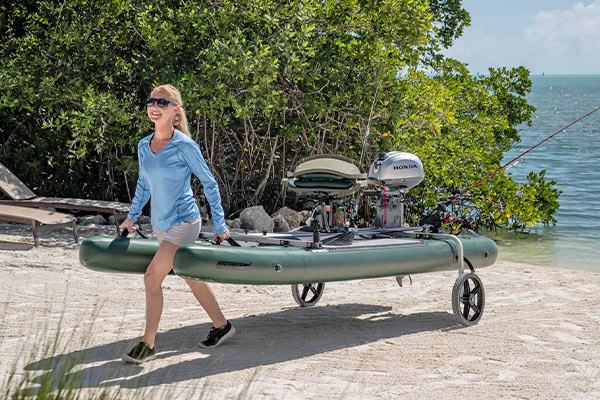 El timón se pliega hacia arriba o hacia abajo para guardarlo fácilmente.