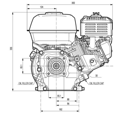 A gasolina, 4 tiempos OHV, enfriado por aire, monocilíndrico, eje horizontal